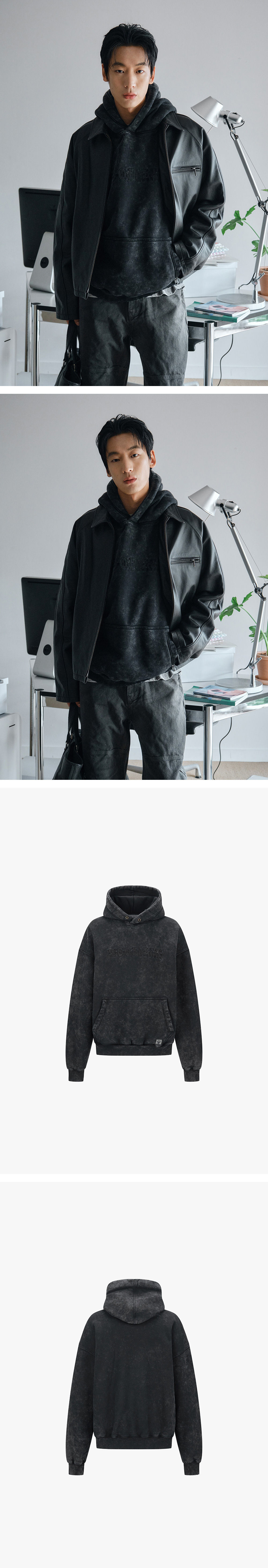-여유로운 핏의 후드 -가슴 중앙에 필기체 woodman 로고 디테일 -전면 포켓 디테일 포인트 -스톤 워싱 가공 처리로 자연스러운 색감과 빈티지한 무드