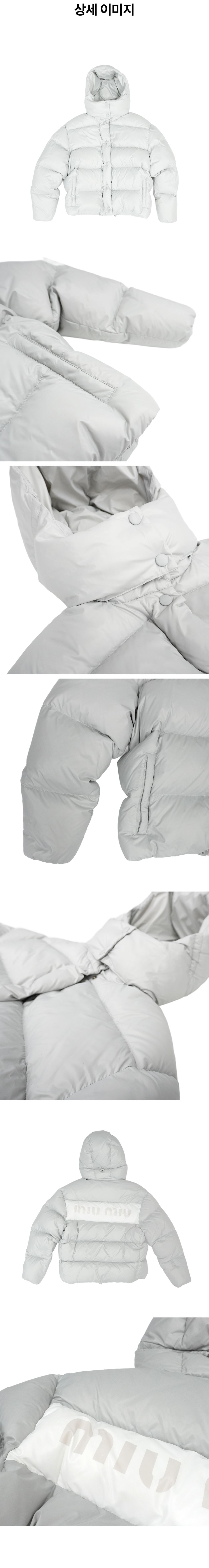 미우미우 여성 백로고 푸퍼 후드 나일론 다운 패딩 자켓 그레이