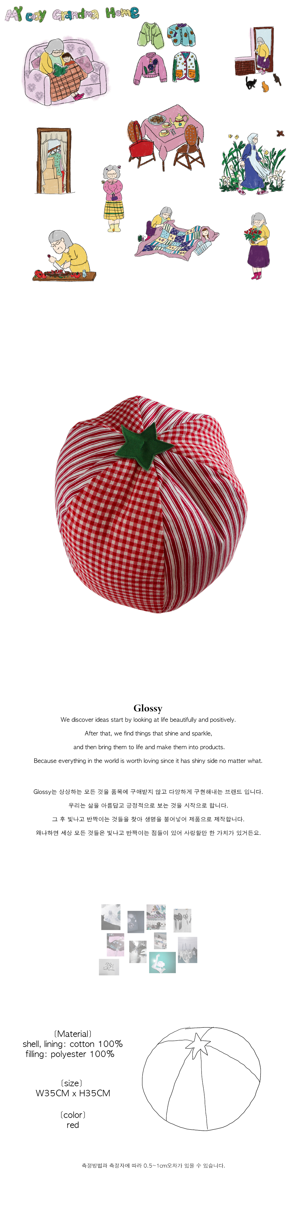 설탕 뿌린 달콤한 빨간 토마토모양의 쿠션 지퍼가 있어 쿠션 커버 세탁 가능 합니다. 침대 한켠이나 쇼파에 두어 보세요! 사이즈: 가로 35cm*세로35cm 겉감,안감- 면 100% 충전재-폴리에스테르 100% 세탁방법 * 중성세제를 사용하여 세탁기로 미온수 세탁 해주세요. (물빠짐이 있을 수 있어 단독 세탁 추천 드립니다.) * 건조기를 이용하여 건조 해주시고, 쿠션 솜이 뭉쳐 있을 경우 부드럽게 풀어주세요.