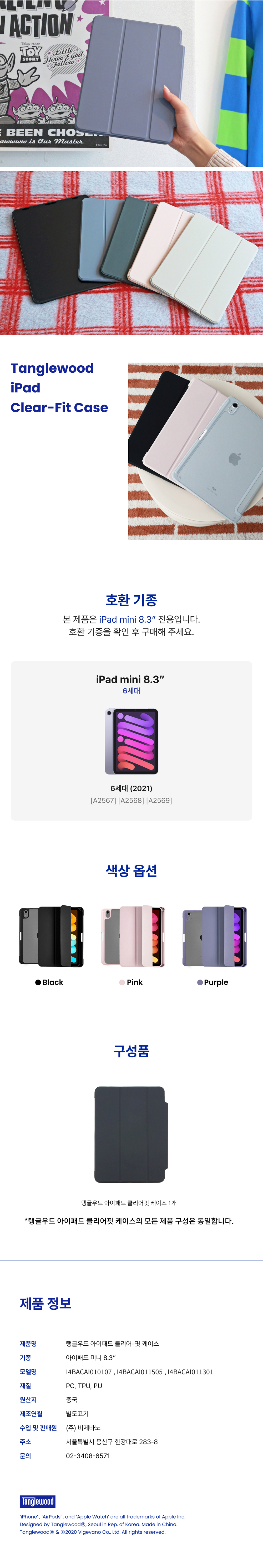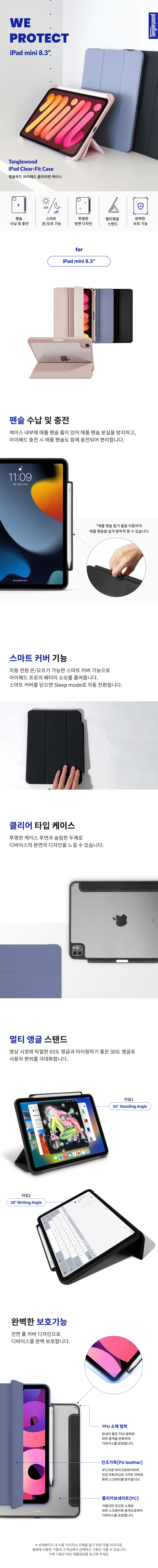 탱글우드 아이패드 미니 8.3인치(6/7세대) 클리어 핏 케이스 애플펜슬 수납 스마트커버
