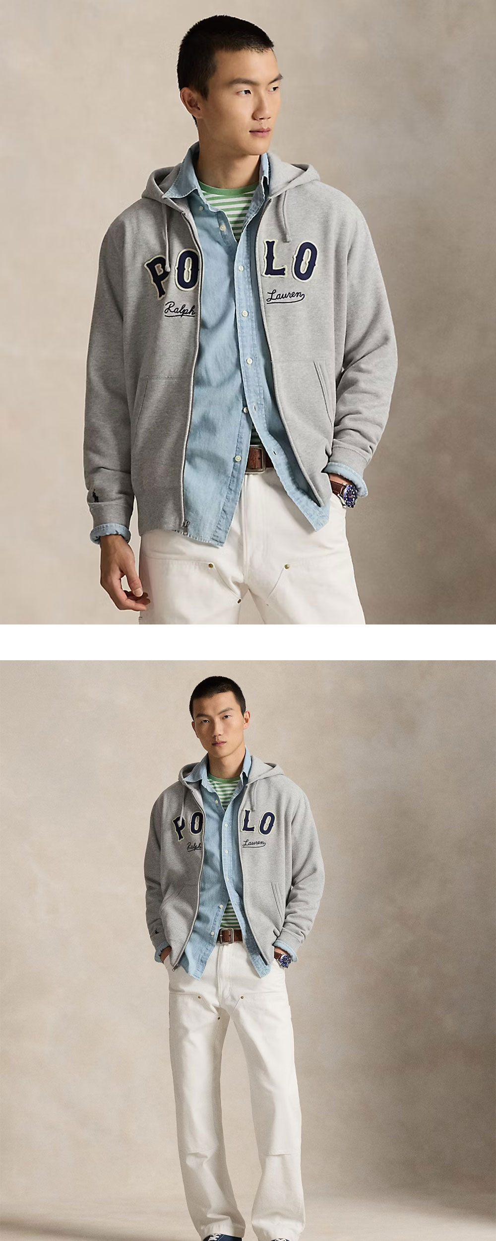 [10%적립] 폴로 랄프 로렌 더 RL 플리스 웨스턴 로고 후디 그레이 - 26SS