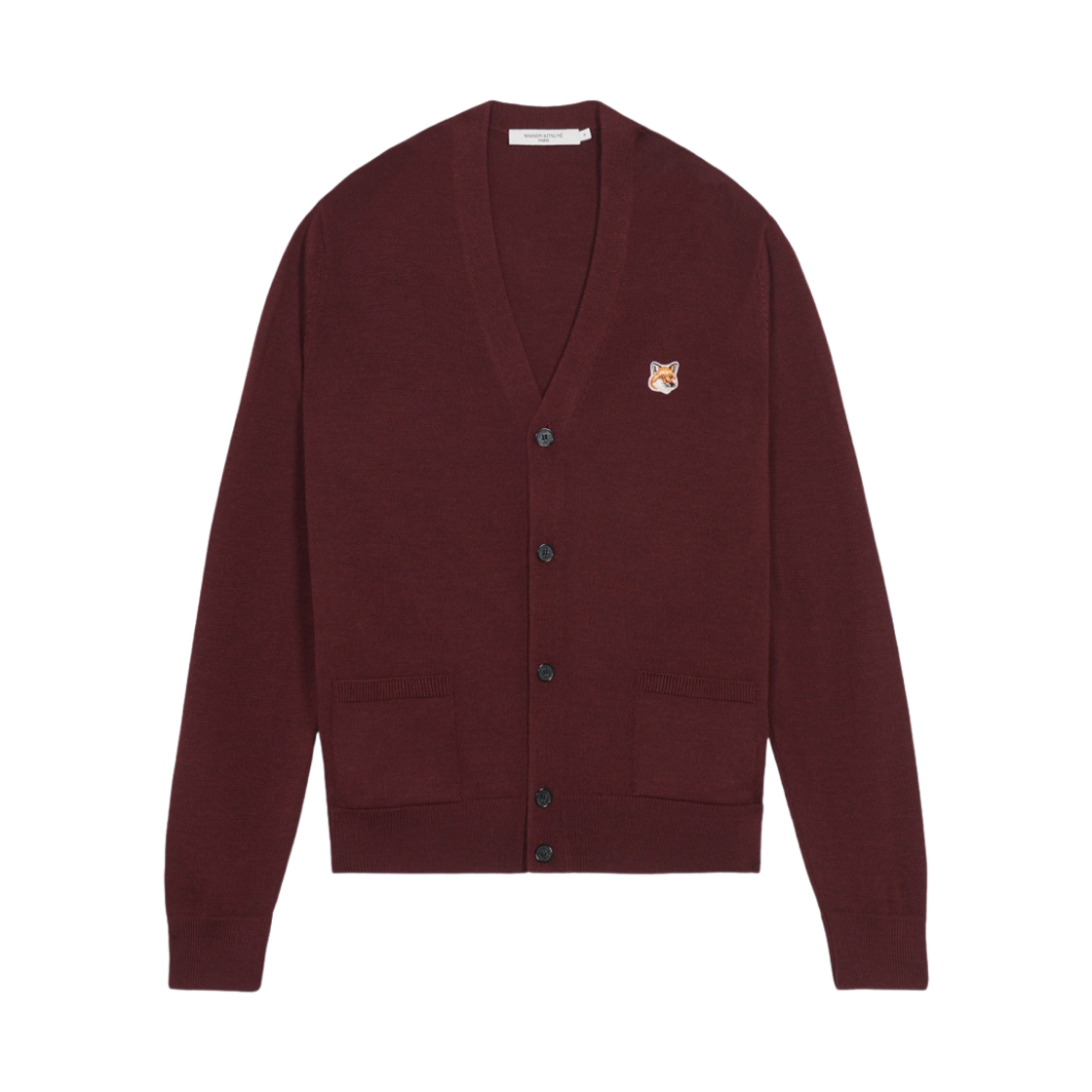 메종 키츠네 폭스 헤드 패치 클래식 가디건 와인 리스