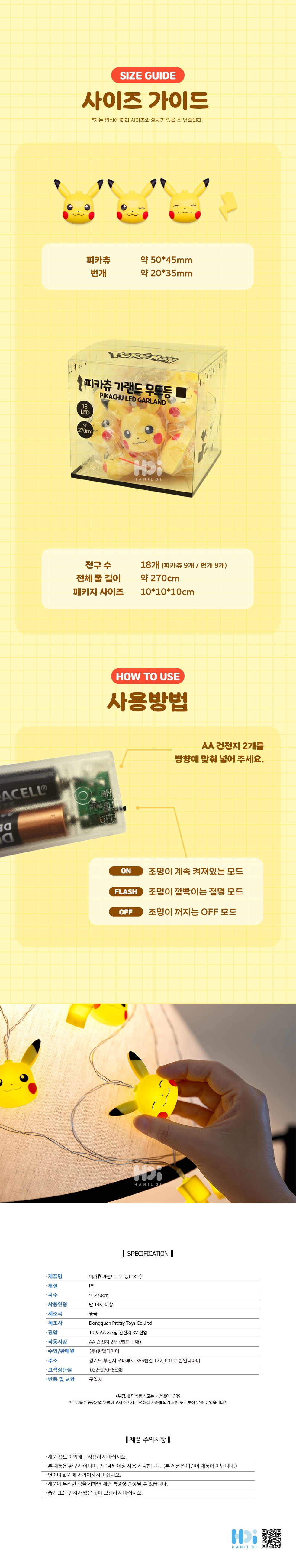 애니모어 포켓몬 피카츄 가랜드 무드등