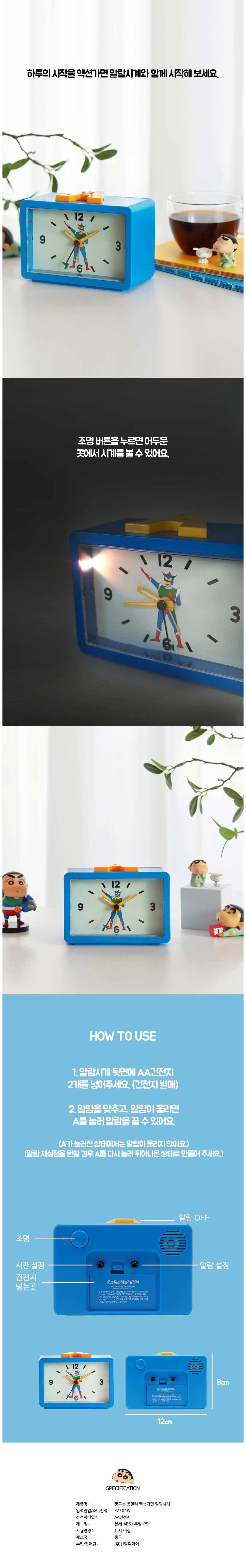 애니모어 짱구 액션가면 알람 시계
