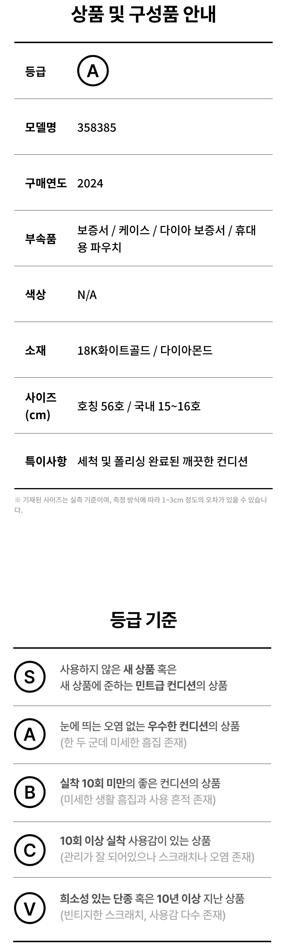 불가리 358385 18K화이트골드 0.3CT 다이아 비제로원 1밴드링 반지-15호,16호aa59908