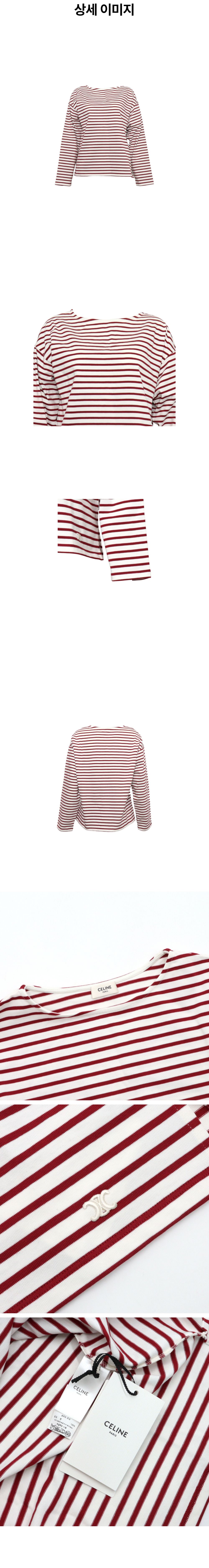 셀린느 2X732314P 코튼 화이트 버건디 스트라이프 여성 롱슬리브 티셔츠aa59979