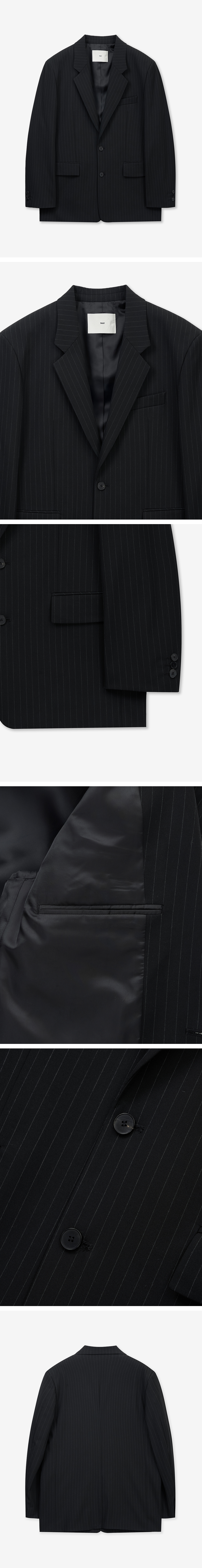 티엔지티 핀 스트라이프 스트럭처 싱글 자켓 블랙