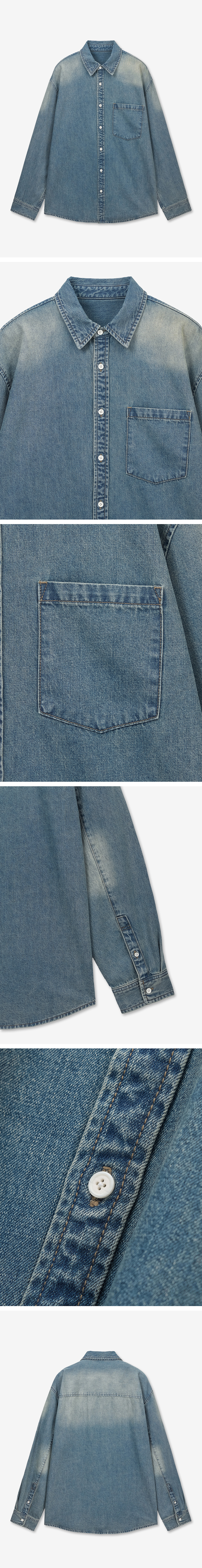 티엔지티 오버사이즈 데님 셔츠 빈티지블루