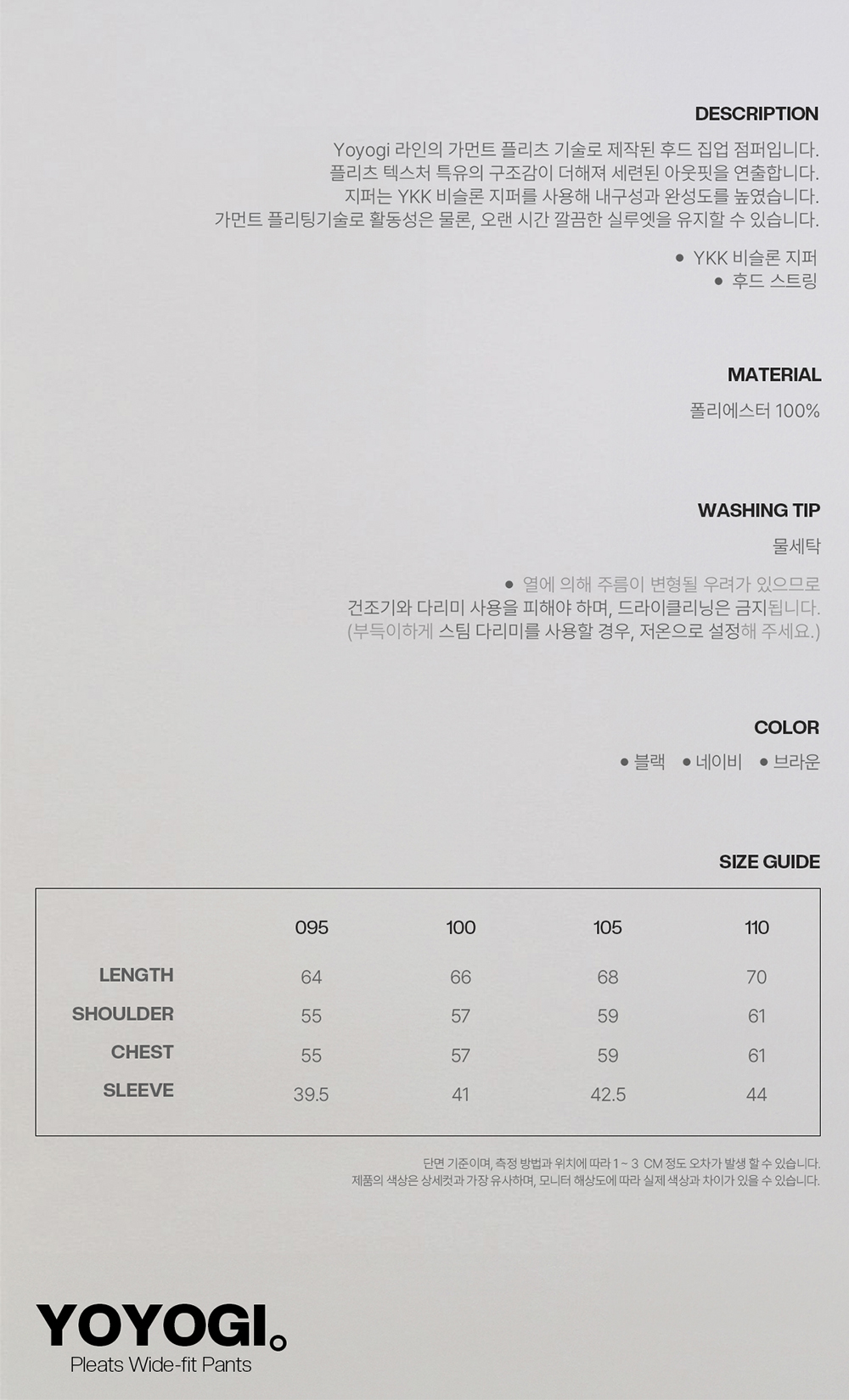 티엔지티 요요기 플리츠 후드 집업 블랙