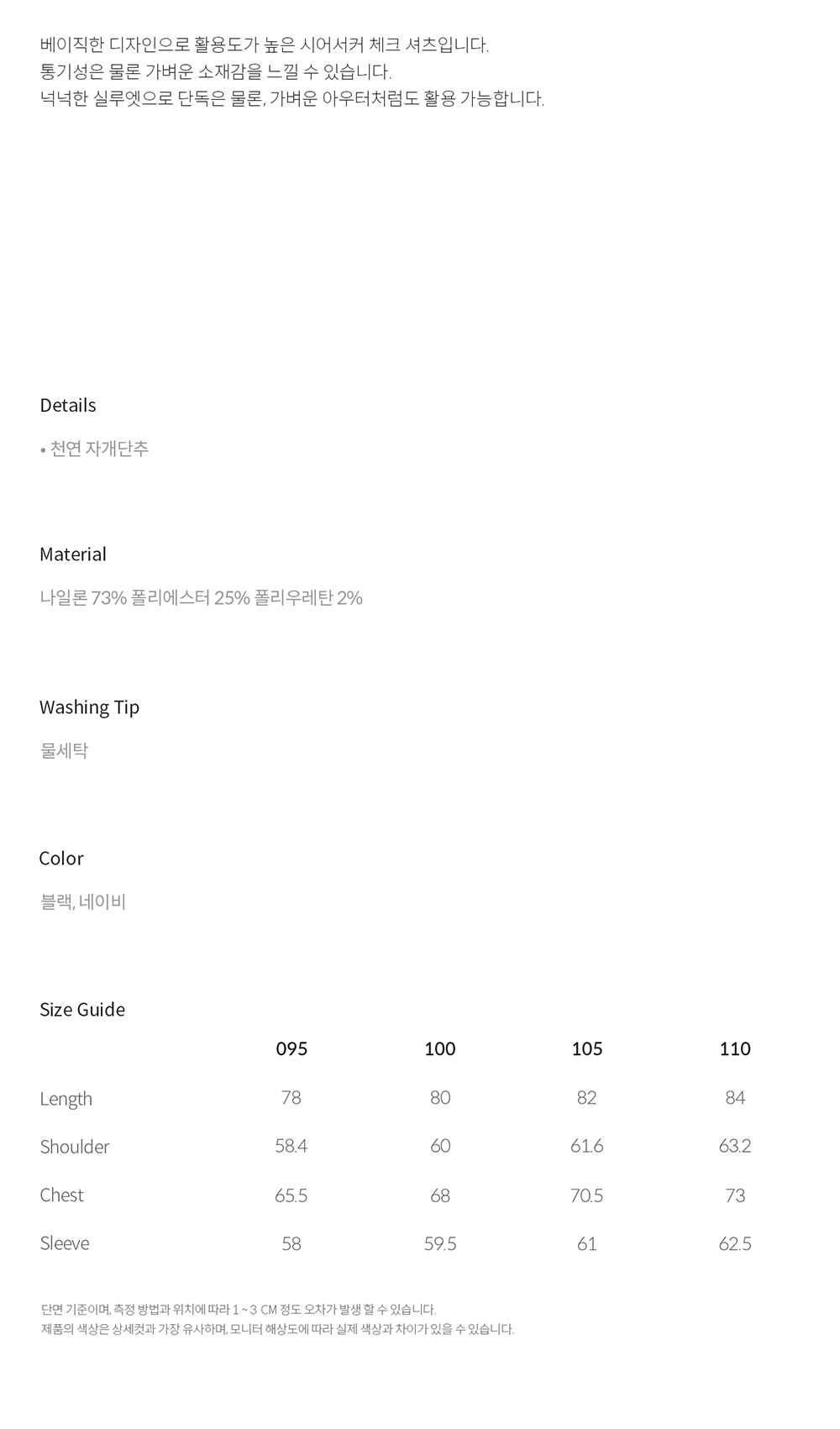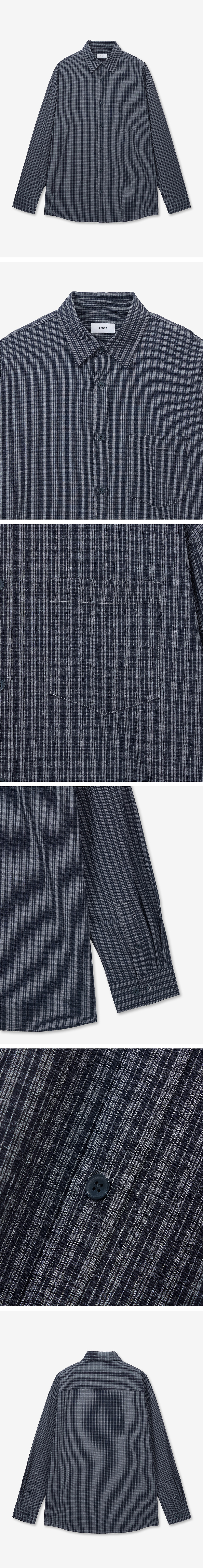 티엔지티 키노시타 시어서커 체크 셔츠 네이비