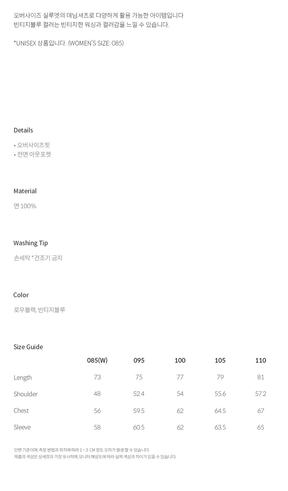 티엔지티 우먼 오버사이즈 데님 셔츠 로우블랙