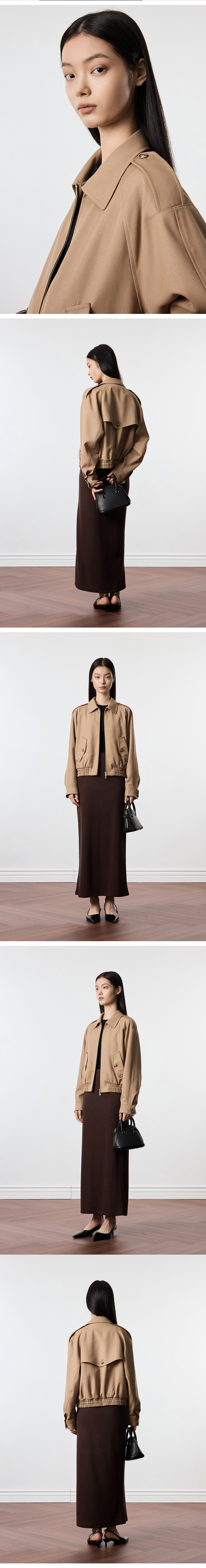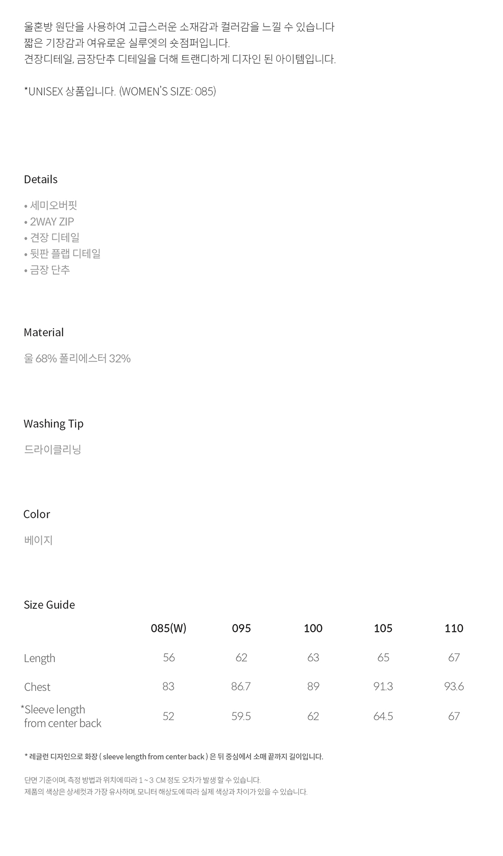 티엔지티 우먼 울 블루종 숏 점퍼 베이지