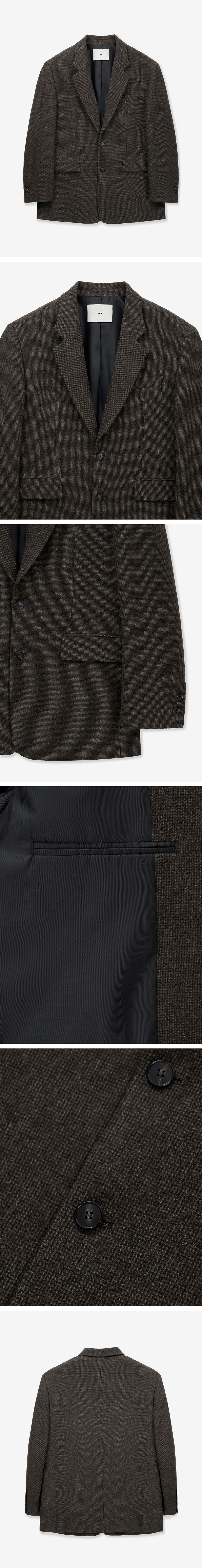 티엔지티 우먼 오버사이즈 울 체크 자켓 브라운