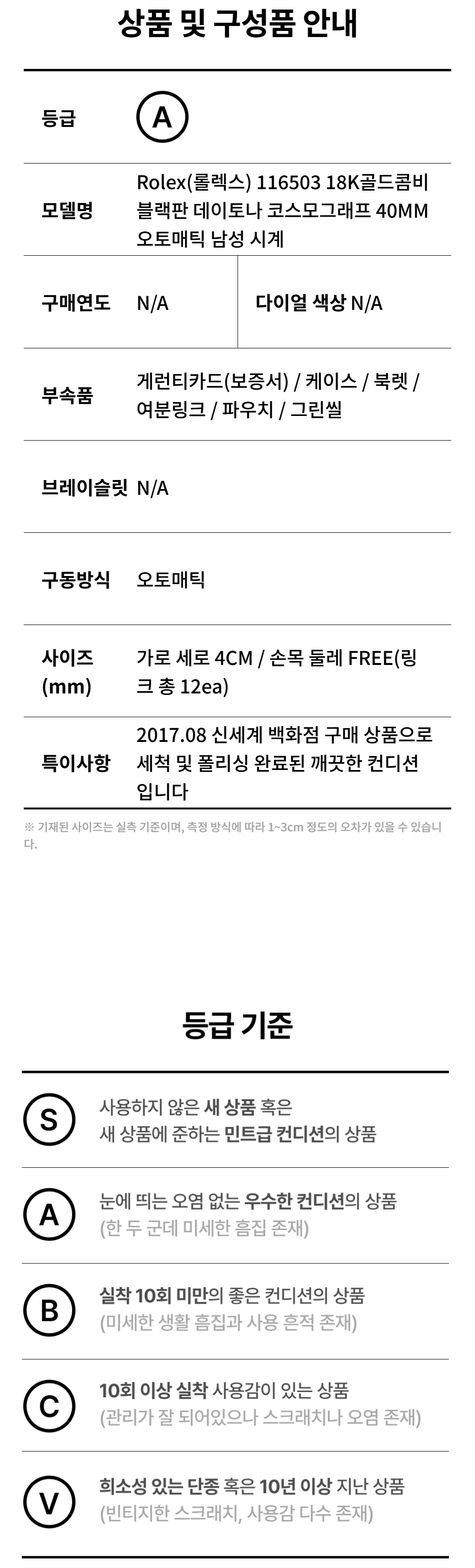 롤렉스 116503 18K골드콤비 블랙판 데이토나 코스모그래프 40MM 오토매틱 남성 시계aa58913