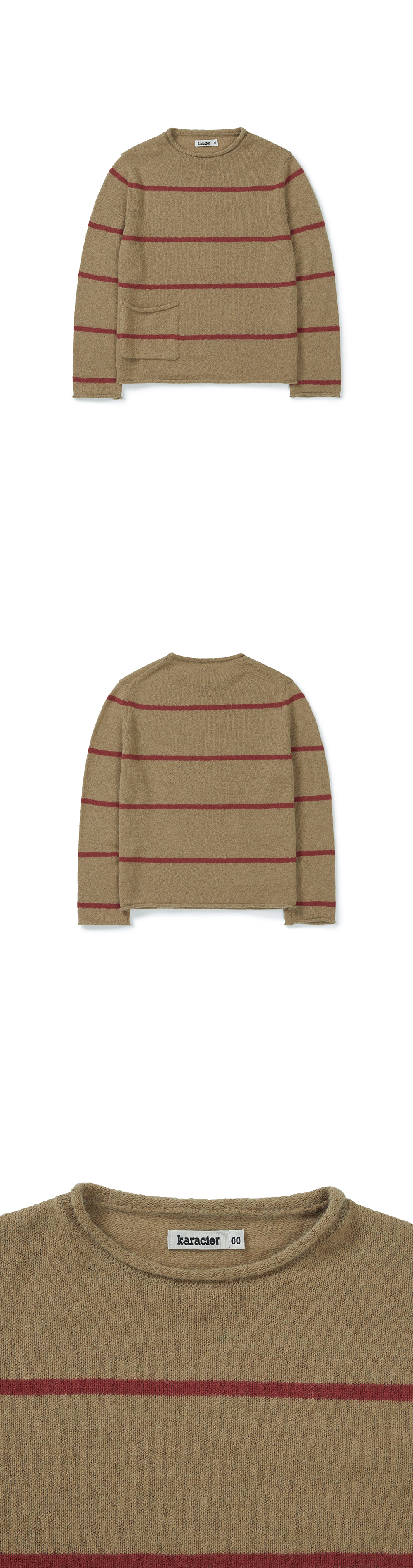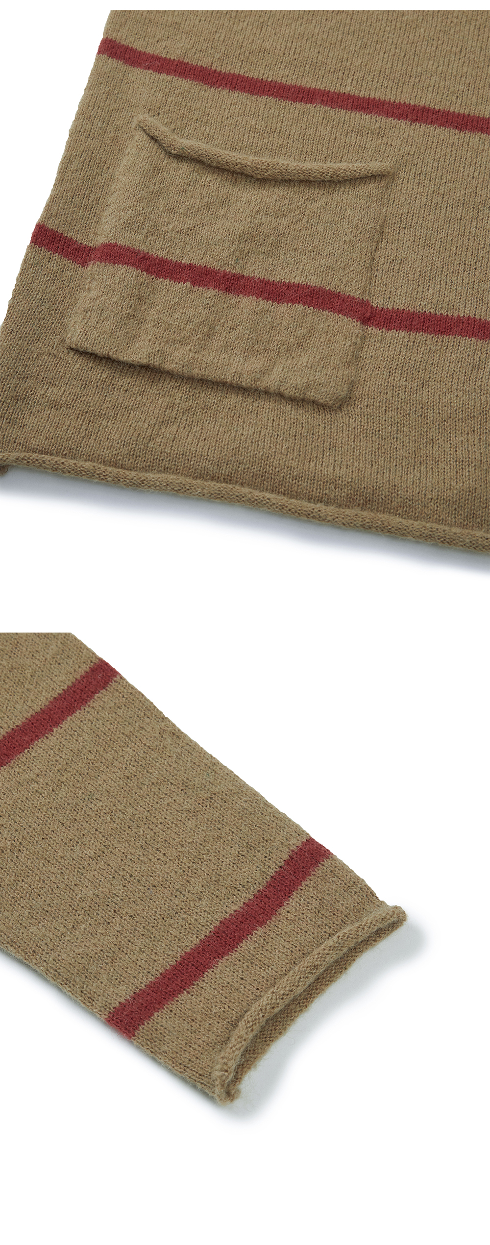 Product Info. - 울 블렌딩 원사로 편직한 사용한 라운드 넥 풀오버 니트 - 울 혼방 소재 특유의 가볍고 포근한 착용감과 은은하게 살아나는 헤어리한 텍스처 - 넥라인·소매·밑단에 과도한 시보리 없이 자연스럽게 말리는 롤 엣지 마감 - 정제된 릴렉스드 핏으로 단독 착용 시에도 균형감 있게 떨어지는 실루엣 - 스트라이프 컬러 블럭을 활용한 균형감 있는 디자인 - 프런트 패치드 포켓 디테일 - 이너 레이어드 또는 단독 착용 모두에 적합한 니트웨어