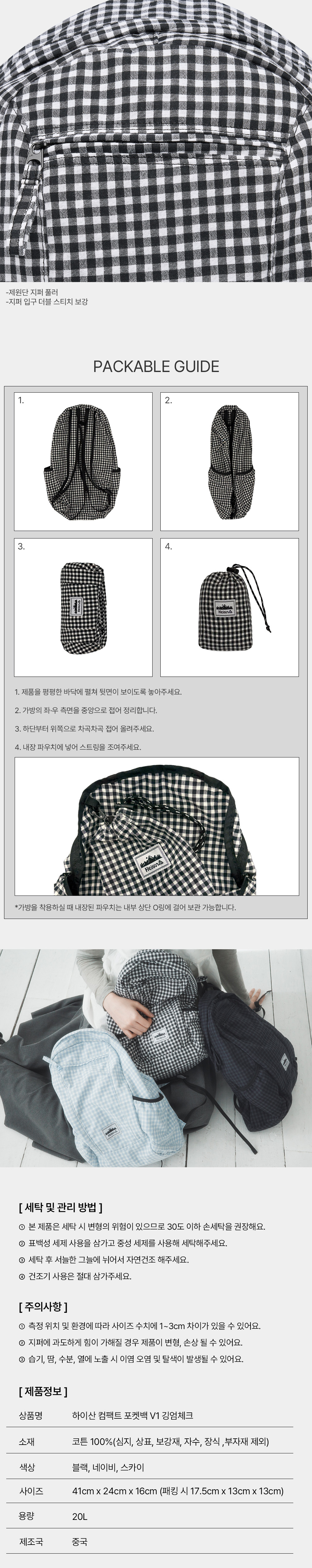 하이산 컴팩트 포켓백 V1 깅엄체크 네이비