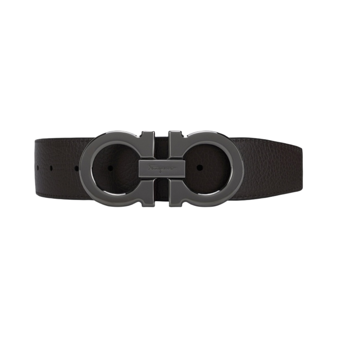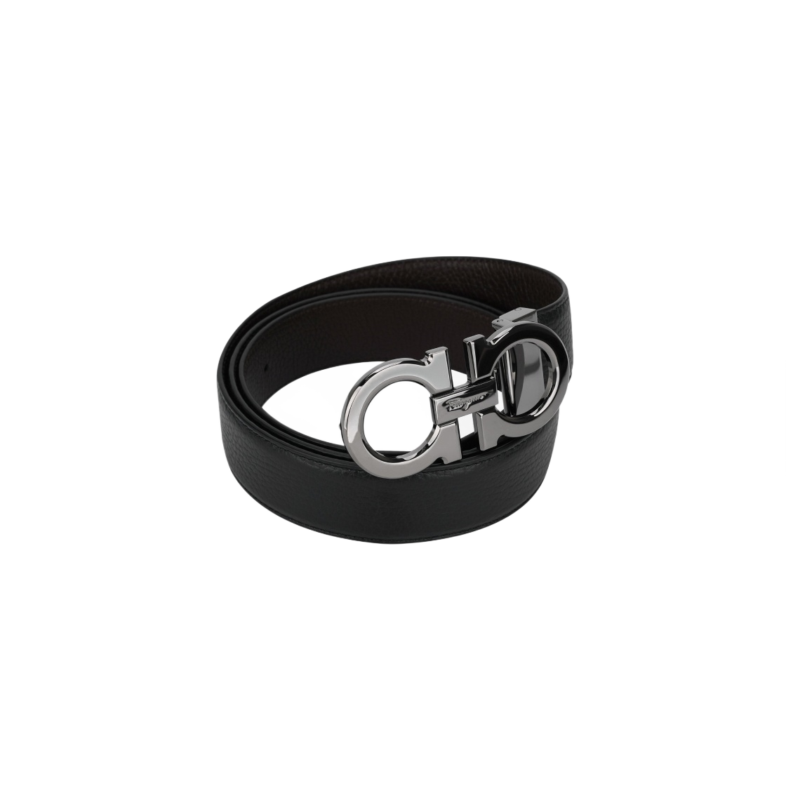 페라가모 리버시블 어드저스터블 텍스쳐드 카프스킨 레더 간치니 벨트 블랙 히코리