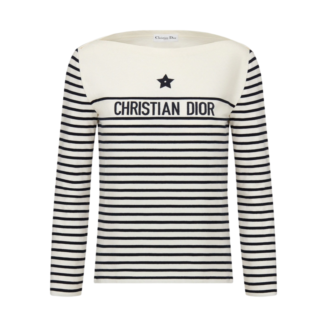 (W) Dior Dioriviera Long Sleeved T-Shirt White Navy Blue