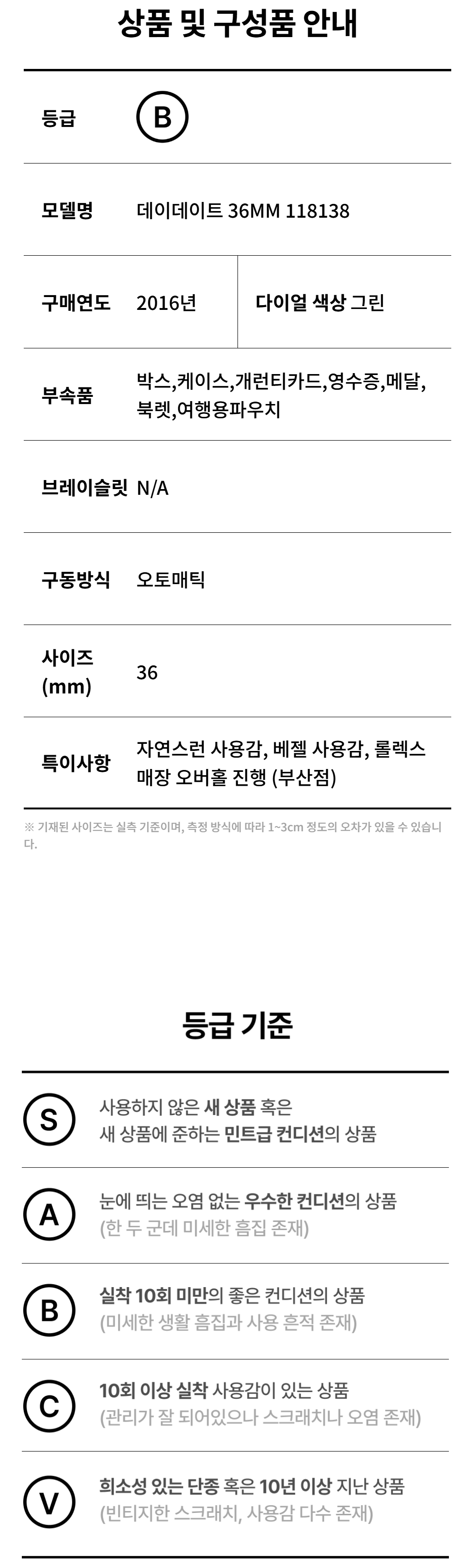 롤렉스 데이데이트 36MM 118138