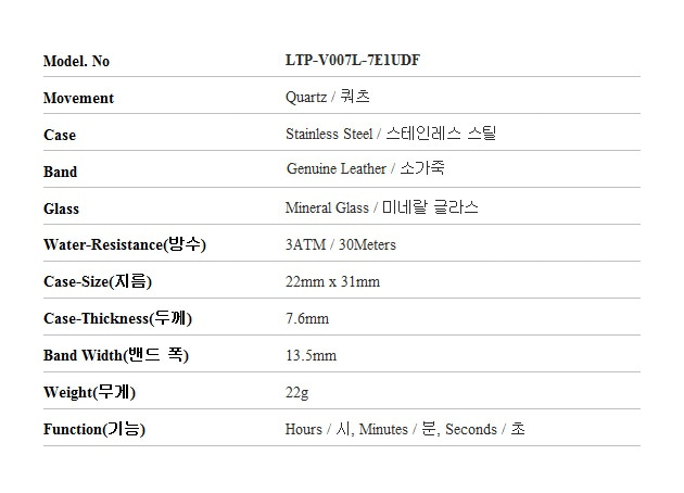 [15% 쿠폰] Casio LTP-V007L-7E1