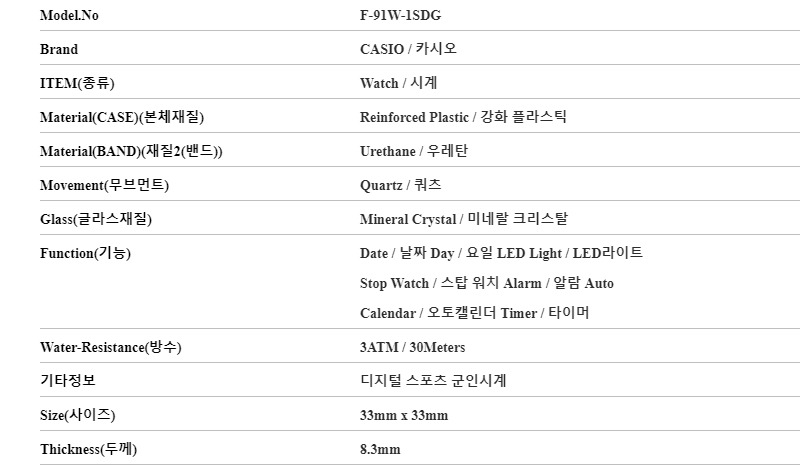 [15% 쿠폰] 카시오 F-91W-1SDG