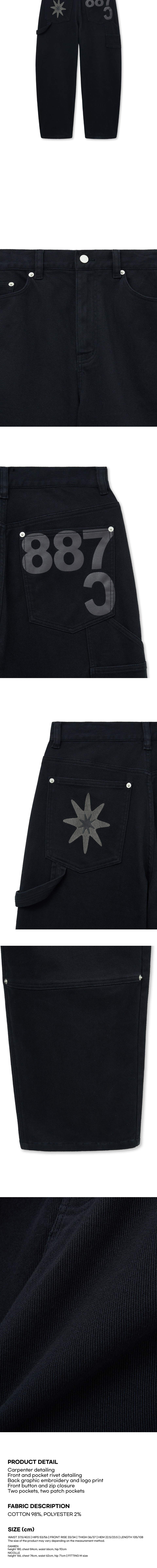 캑터스도넛마켓 리벳 자수 카펜터 트라우저 – 네이비