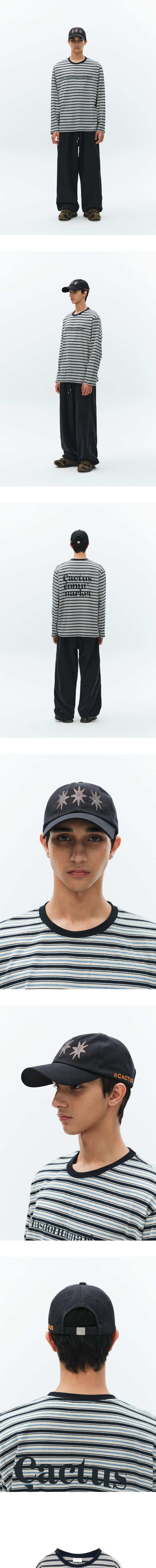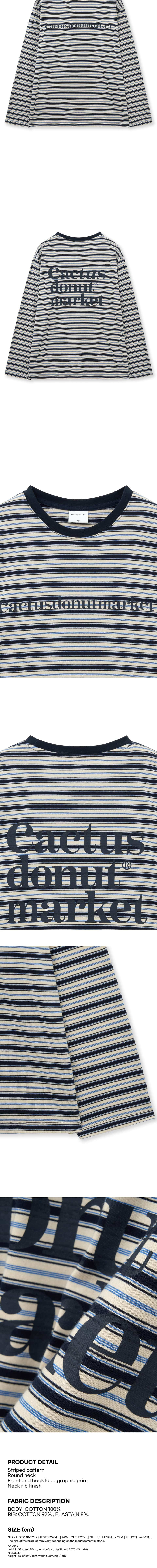 캑터스도넛마켓 로고 멀티 스트라이프 롱슬리브 티셔츠 – 네이비