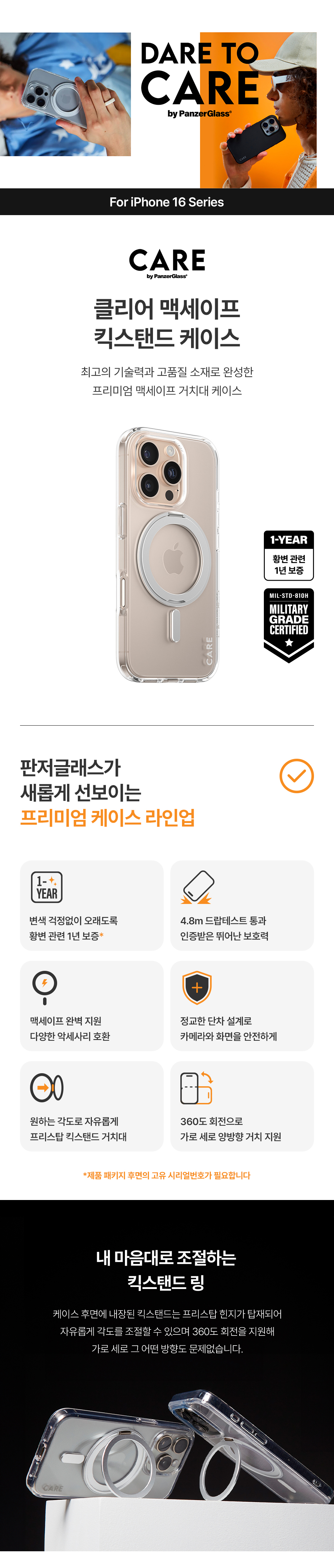 판저글래스 케어 킥스탠드 M-케이스 아이폰 16 시리즈