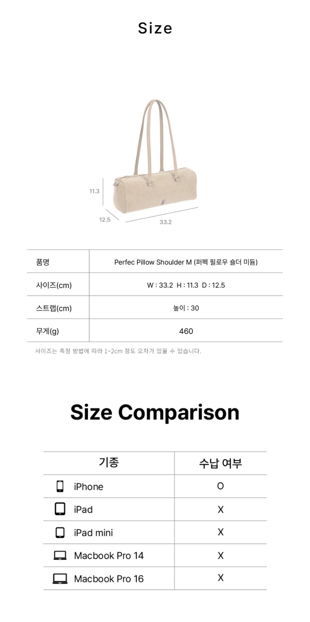 귀여운 사각 쉐입의 가로로 긴 디자인이 특징인 숄더백스웨이드 소재를 사용하여 클래식하고 빈티지한 무드를 표현핸들이 연결된 오링이나 옆면 오링에 다양한 참 스타일링 가능내부 지퍼 포켓 1 / 외부 오픈 포켓 1 ※ 이염주의 안내 소재 특성상 수분 또는 마찰에 의한 이염이 발생할 수 있으니, 착용 시 주의하여 주시기 바랍니다.