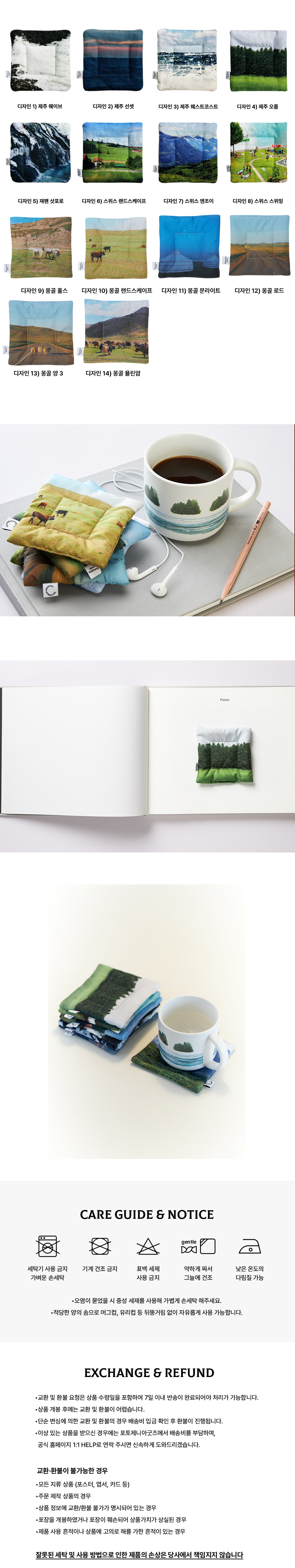 * 알러지케어 폴리 원단 소재로 오염이 묻었을 시 가벼운 손세탁 가능 * 가벼운 유리컵 사용 시 코스터의 쿠션감으로 인한 컵의 뒤뚱거림을 보완하여 리뉴얼 되었습니다. 머그컵, 유리컵 등 자유롭게 사용 가능합니다. 포토제니아굿즈는 직접 찍은 사진을 여러분 일상에 전시를 합니다. 자연스레 나와 함께한 시간을 기억해 줄 코스터를 소개합니다. 나 자신을 포함한 소중한 사람에게 선물용으로도 안성맞춤인 아이템으로, 포토제니아굿즈 컵과 함께 사용시 더욱 제 멋을 발휘할 수 있습니다.