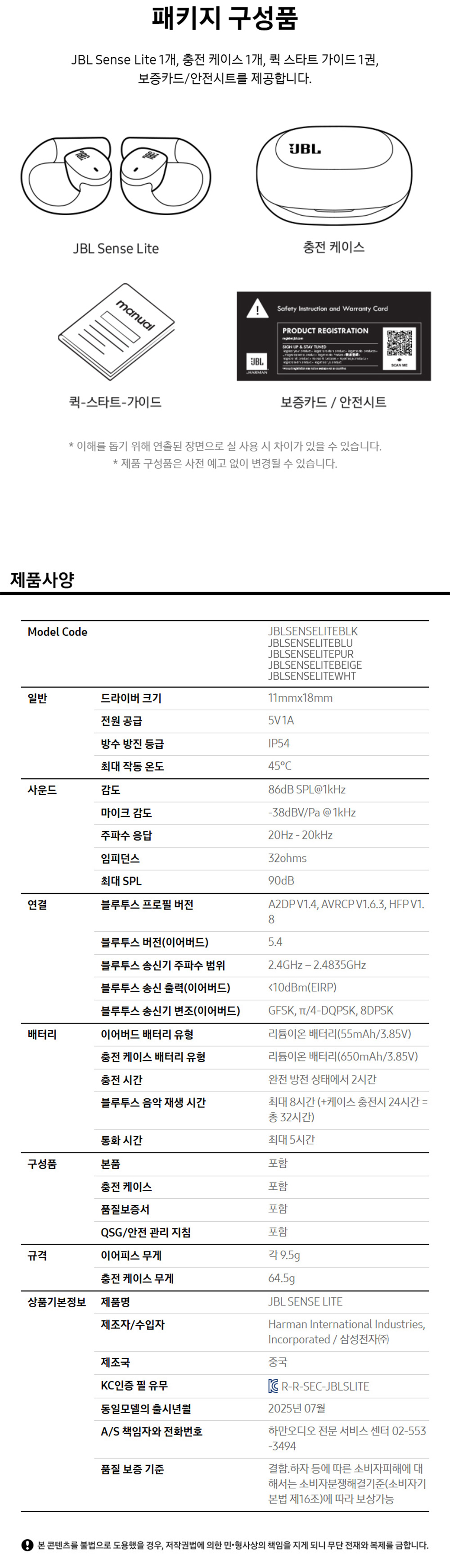 JBL SENSE LITE 블루투스 이어폰