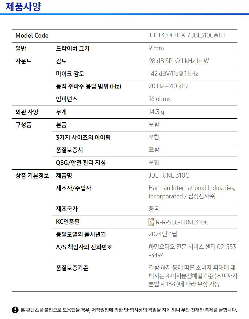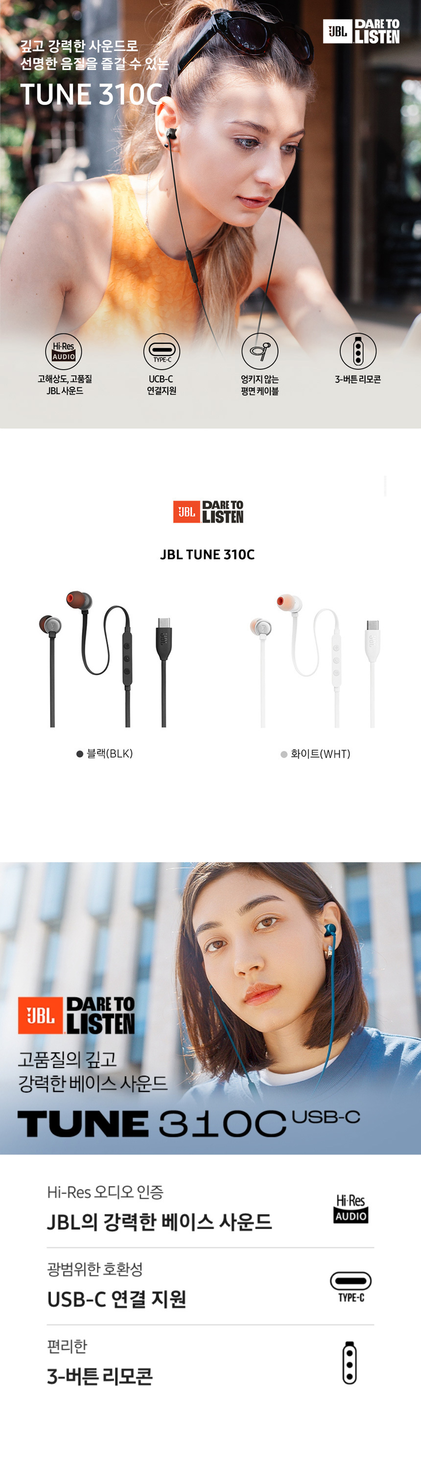 제이비엘 TUNE 310C 유선 이어폰