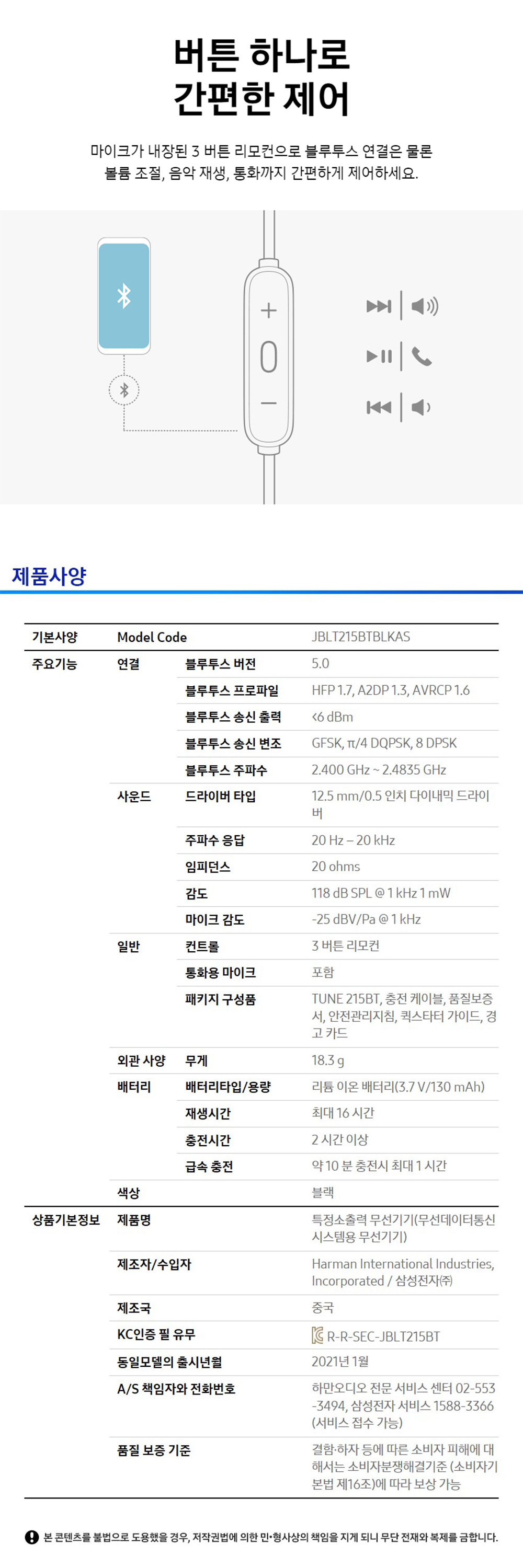 제이비엘 T215BT 무선 블루투스 이어폰