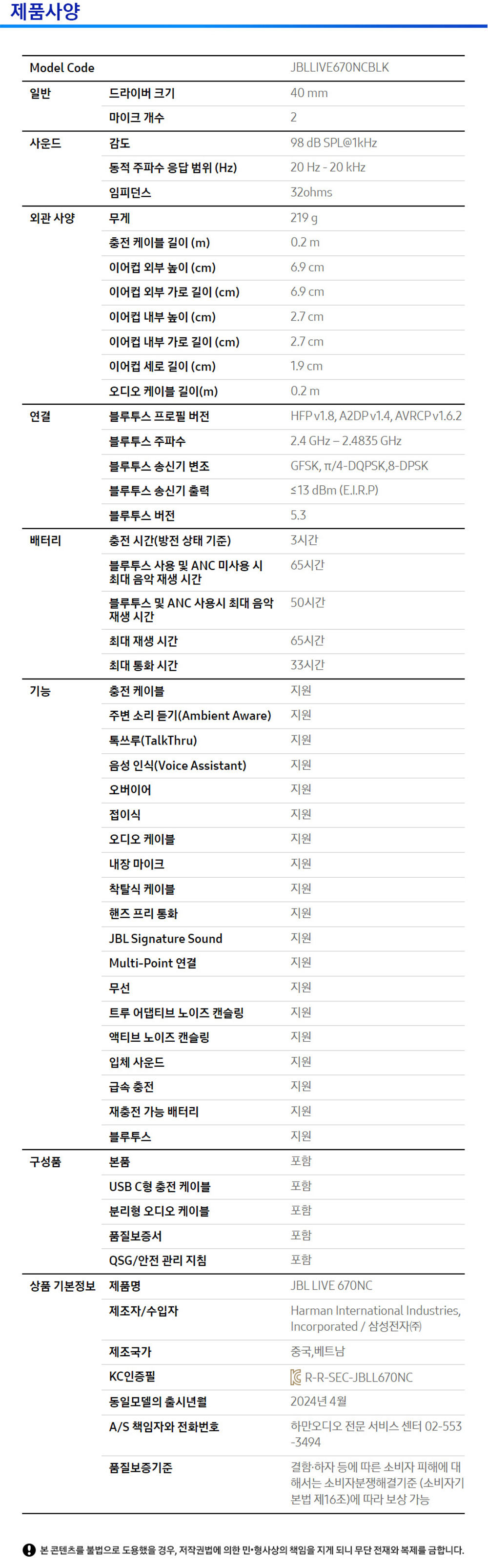제이비엘 LIVE 670NC 노이즈캔슬링 블루투스 헤드셋