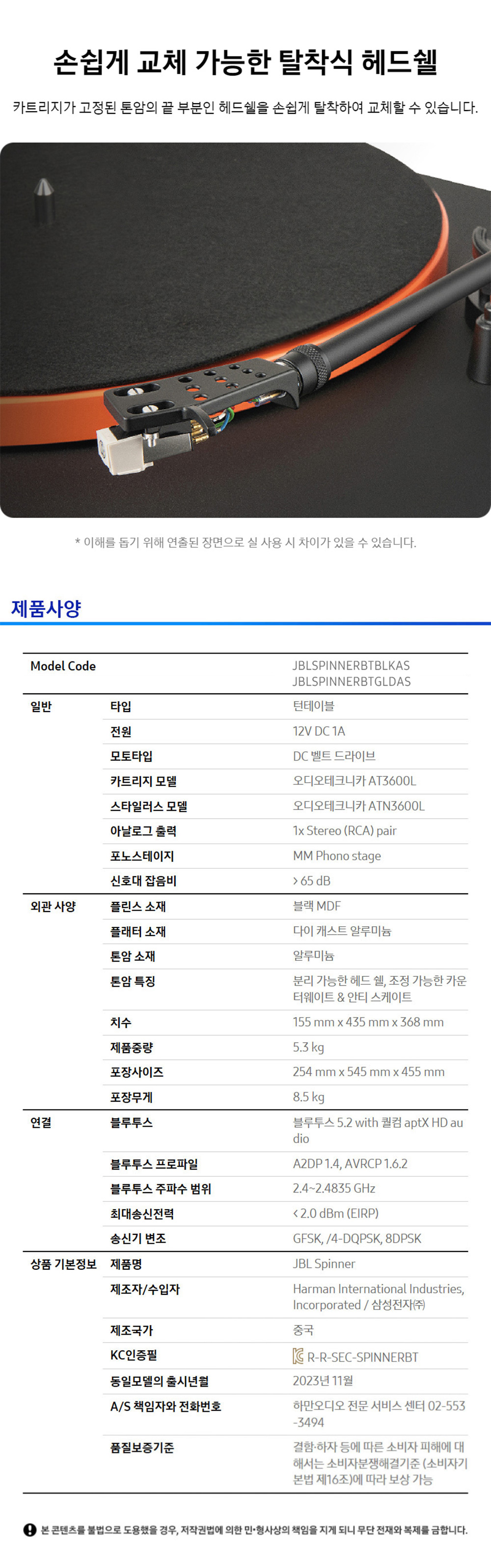 제이비엘 SPINNER BT 턴테이블 LP플레이어 블루투스 지원