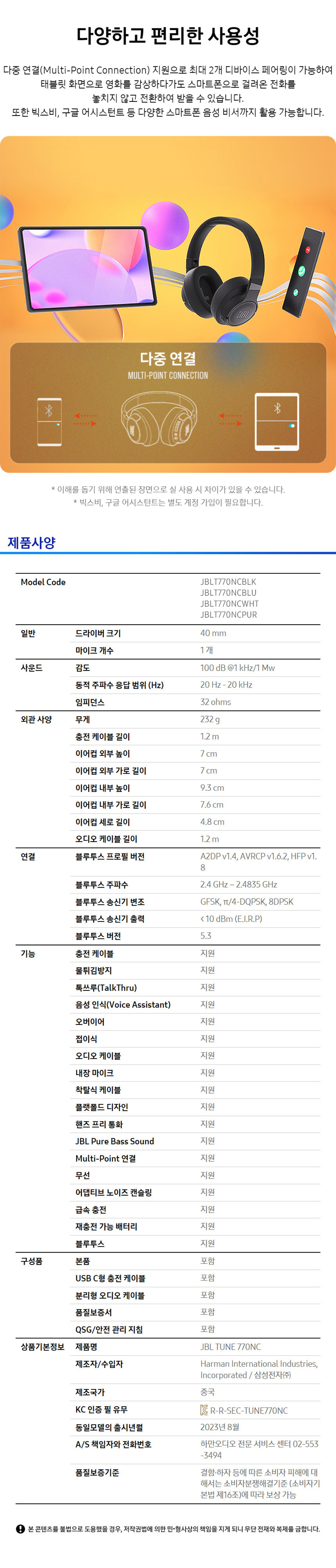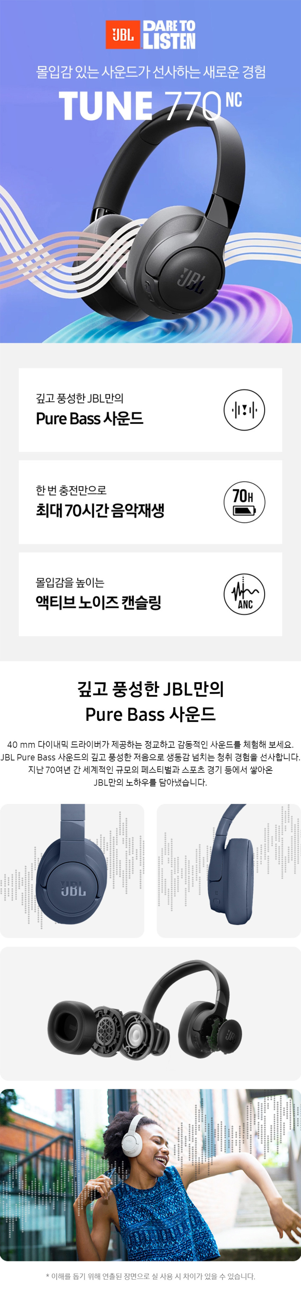 제이비엘 T770NC 액티브 노이즈캔슬링 무선 블루투스 헤드셋