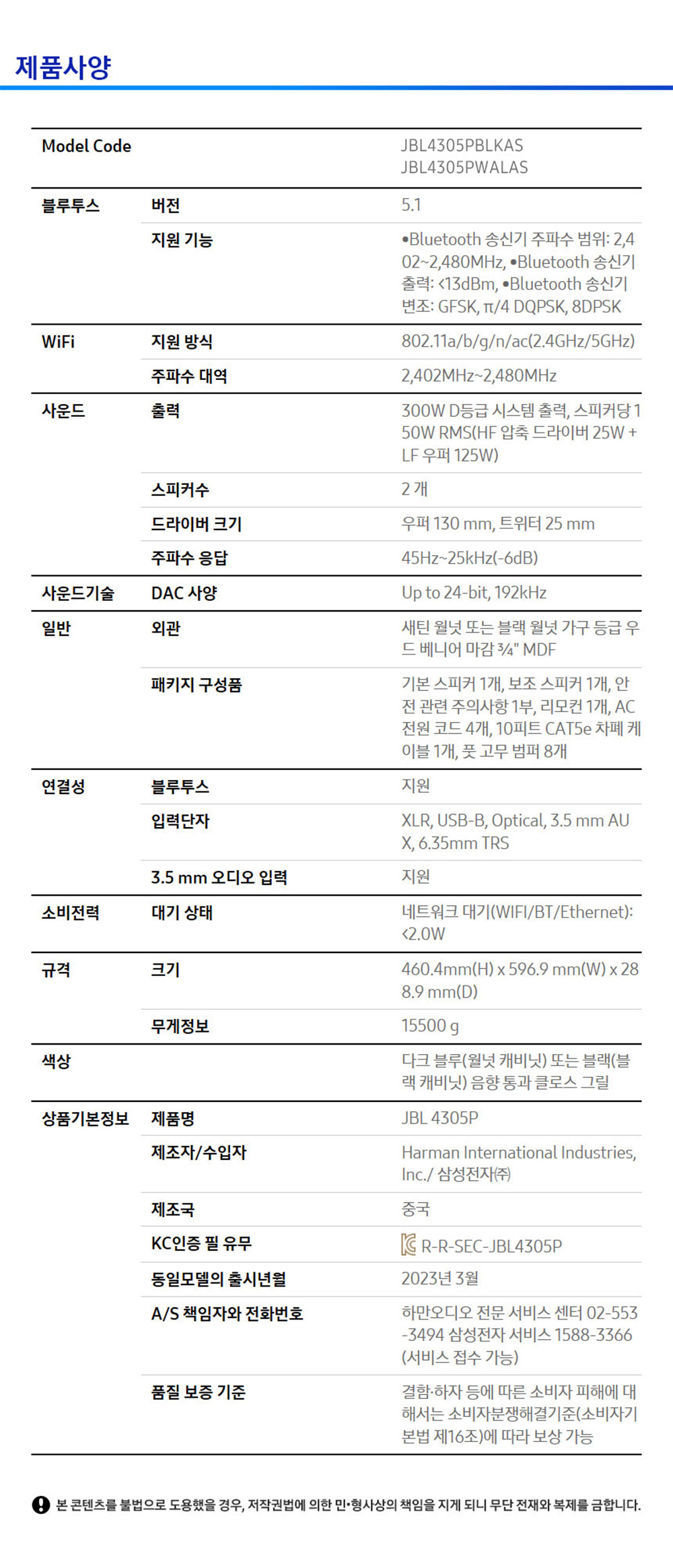 제이비엘 4305P 액티브 스피커 와이어리스 스트리밍 스피커