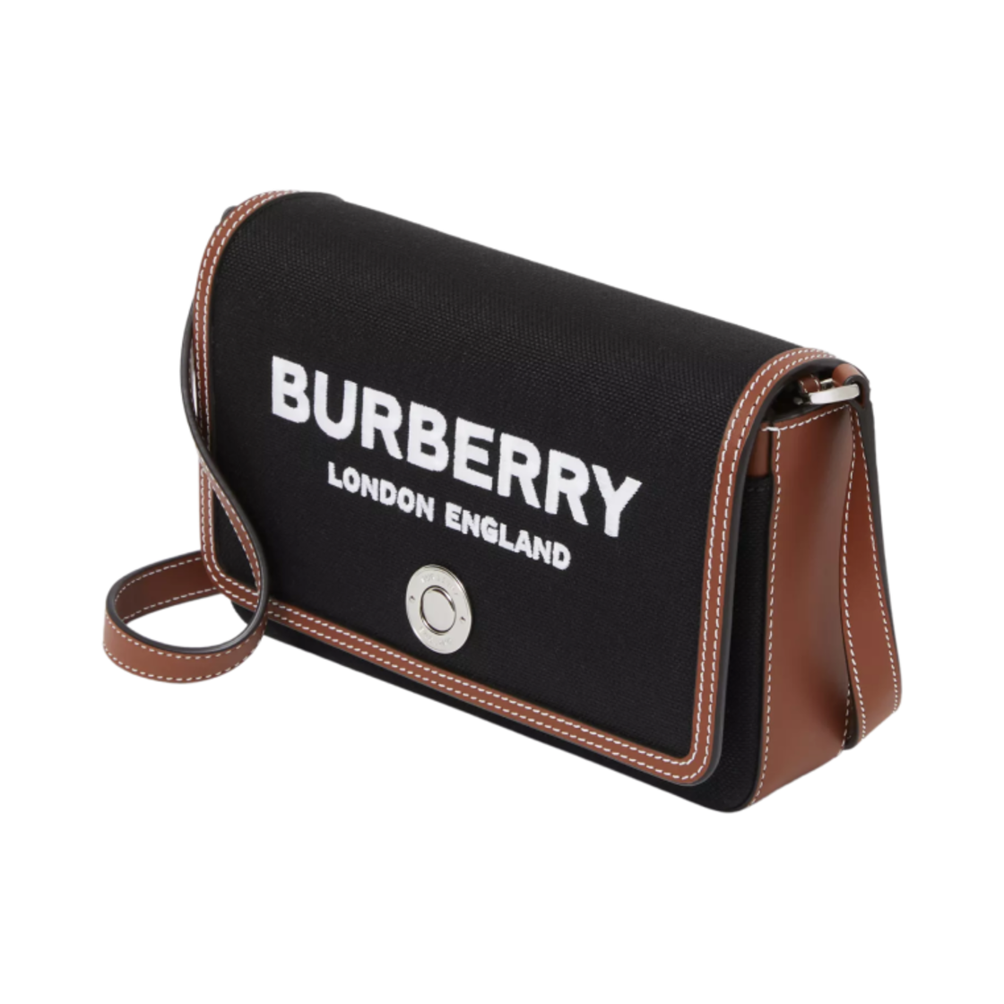 버버리 미니 테크니컬 코튼 앤 레더 토트백 블랙