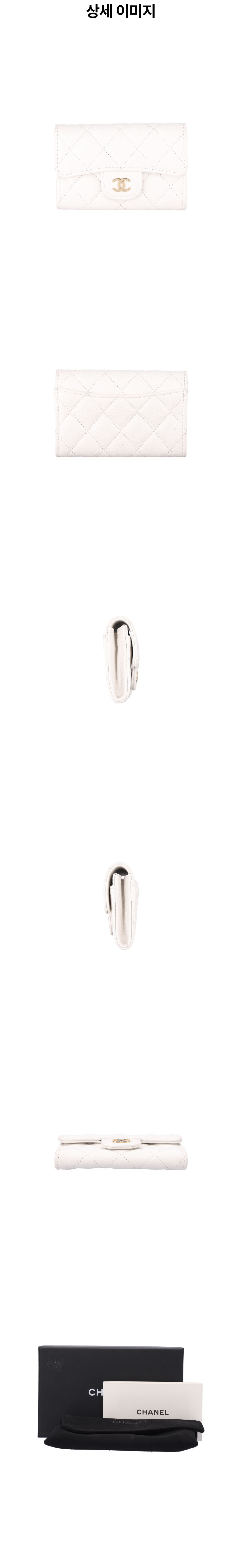 샤넬 AP0214 클래식 카드 지갑 그레인드 카프스킨 화이트 금장