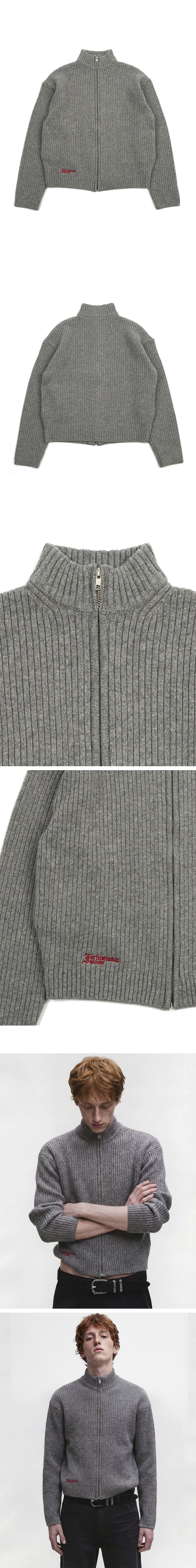 [더블적립]Farfromwhat Far High Neck Rib Knit Zip-Up_Gray