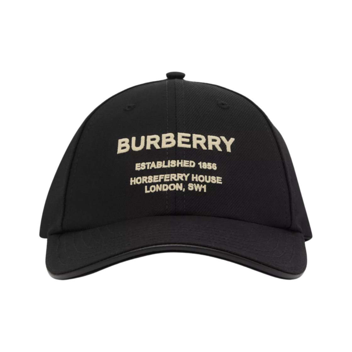 (W) Burberry Horseferry Motif Cotton Twill Baseball Cap Black Beige