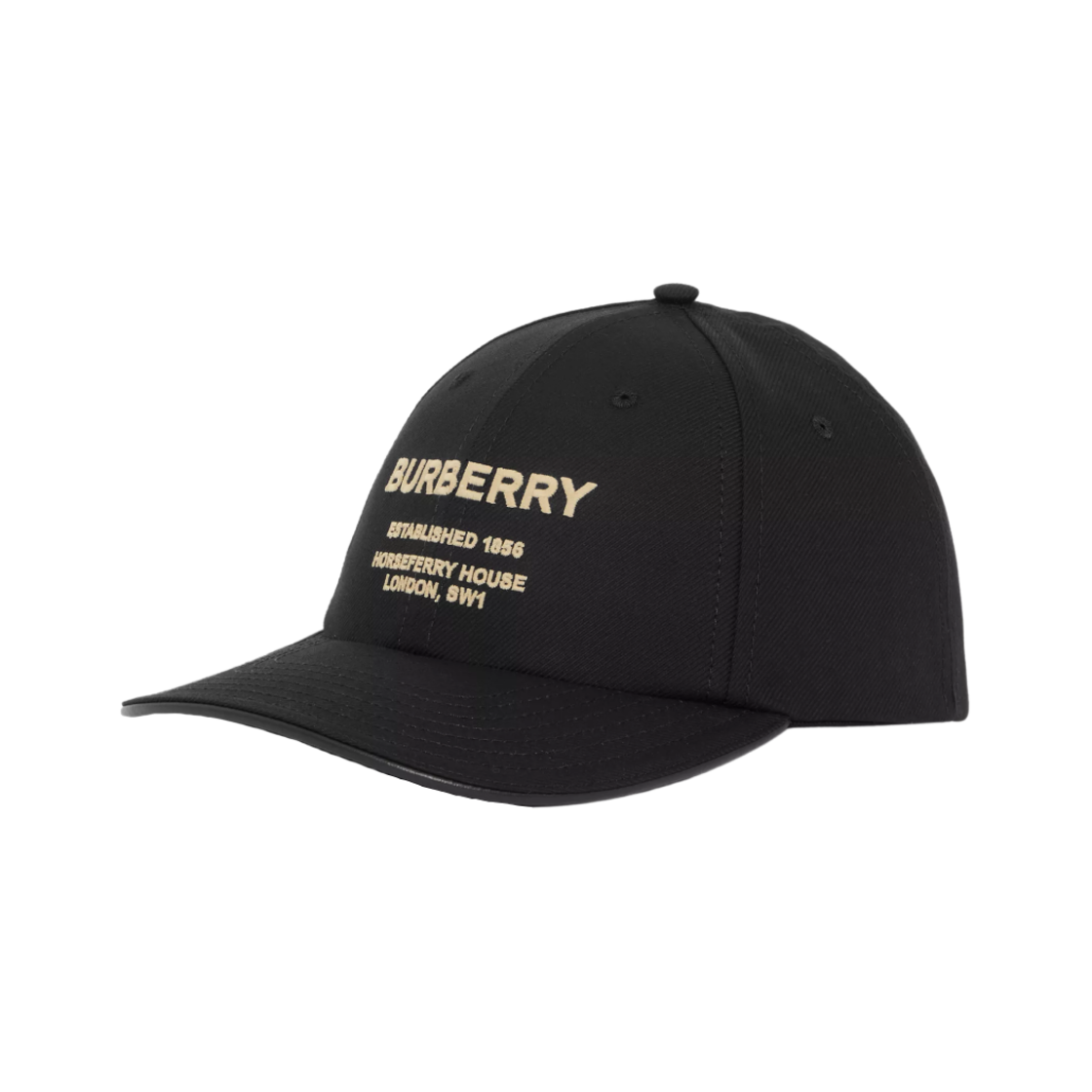 (W) 버버리 호스페리 모티프 코튼 트윌 베이스볼 캡 블랙 베이지