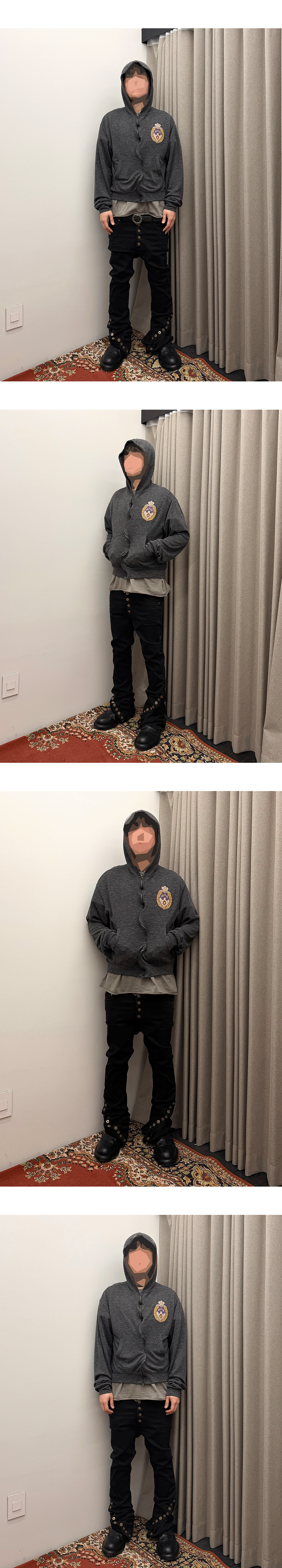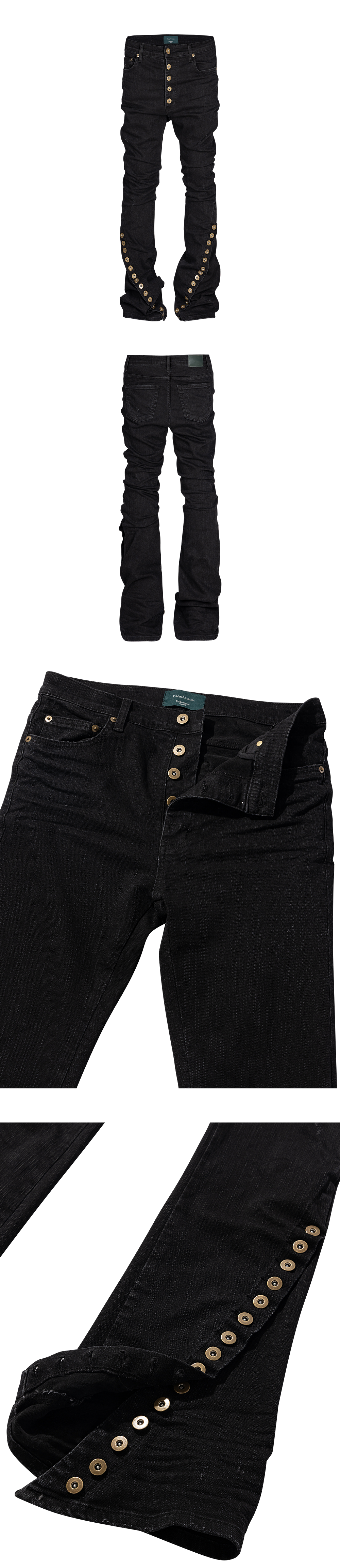 자연스럽게 퍼지는 플레어 라인에 여러 개의 스냅 디테일을 더해 구조적인 실루엣과 감각적인 무드를 완성한 데님입니다. Model spec - 178cm / 70kg - Size 1 착용