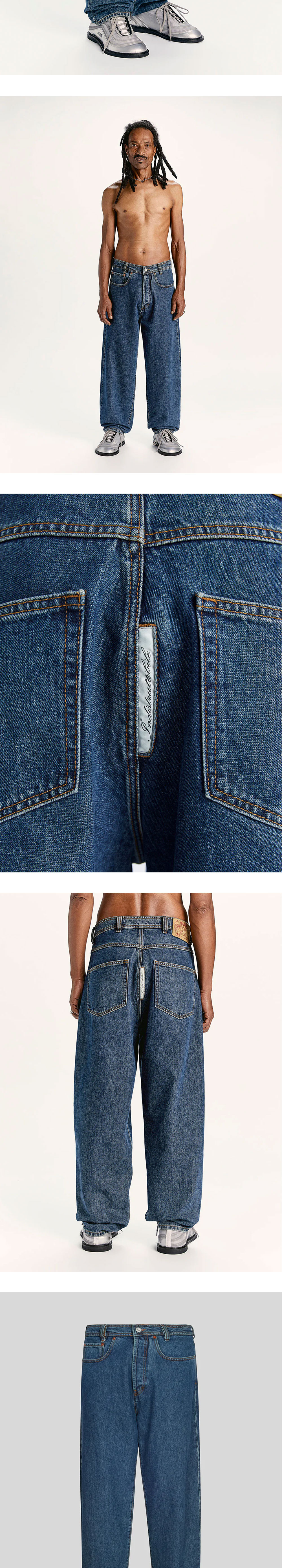마리아노 인디스트루티비레 데님 블루 입니다. - 밑단이 좁아지는 테이퍼드 핏 - 후면 웨이스트 밴드 브랜드 로고 가죽 패치 - 탄탄한 100% 코튼 데님 소재 - 클래식한 5 포켓 디자인과 블루 컬러 *모델 스펙: 188cm M Size 착용
