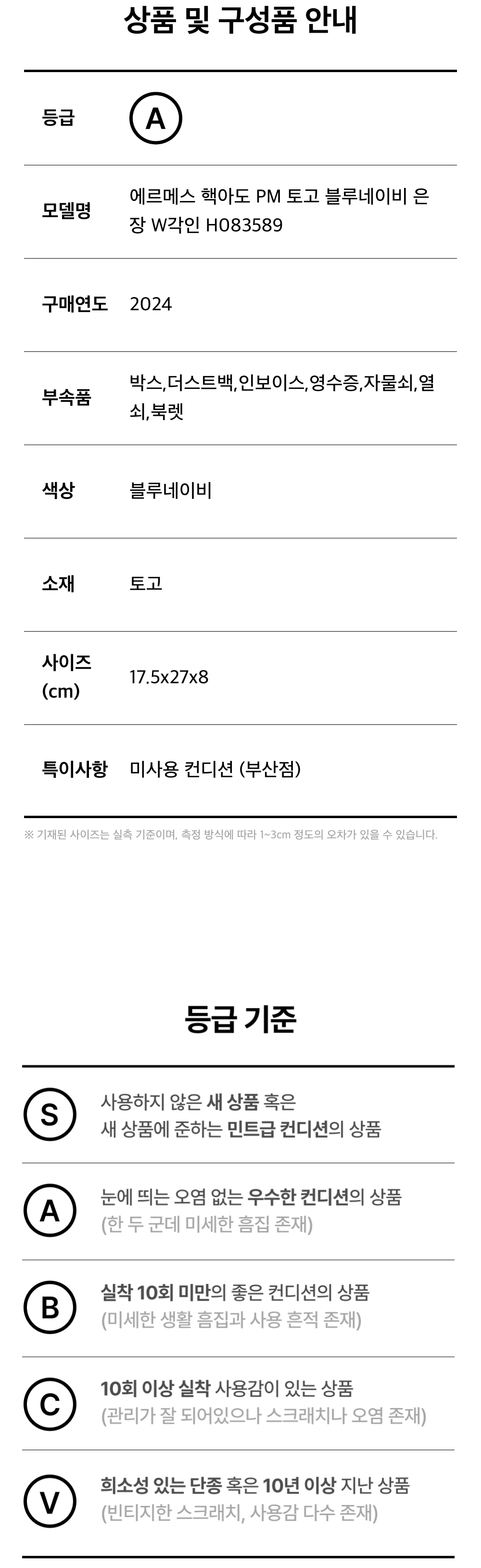 에르메스 핵아도 PM 토고 블루네이비 은장 W각인 H083589