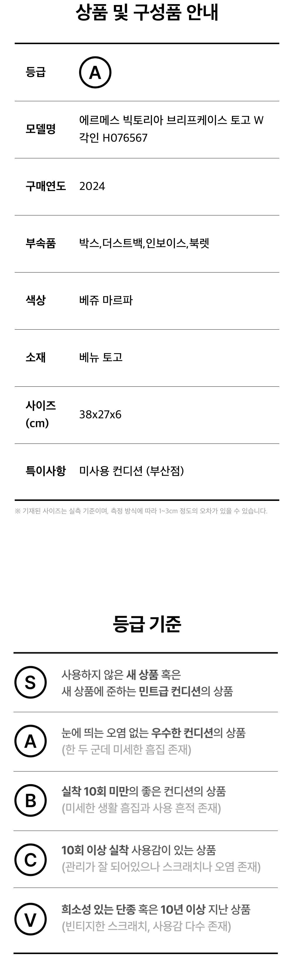 에르메스 빅토리아 브리프케이스 토고 W각인 H076567