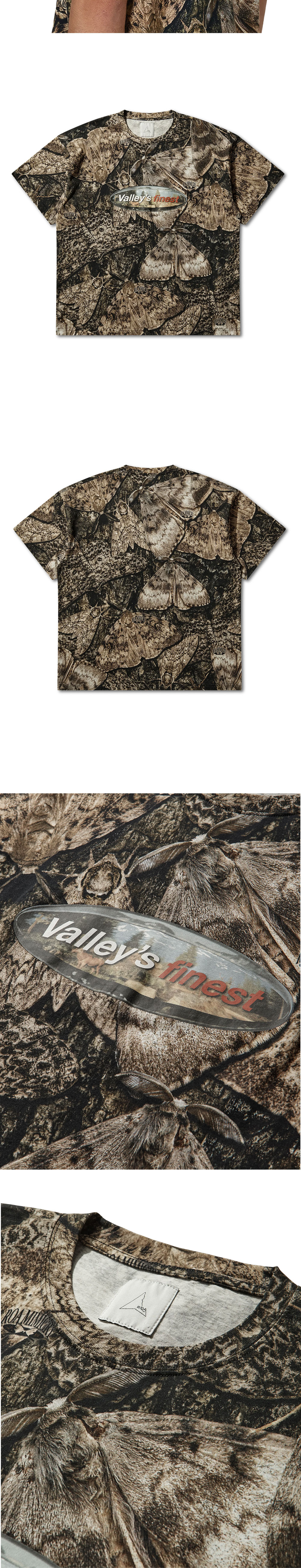 로아 센터 티셔츠 브라운 입니다. - 전체적으로 나비 무늬 프린트 - 앞면에는 로고 프린트 - 골지 칼라와 소매단으로 마감 - 루즈핏 실루엣 *모델 스펙: 182cm M Size 착용
