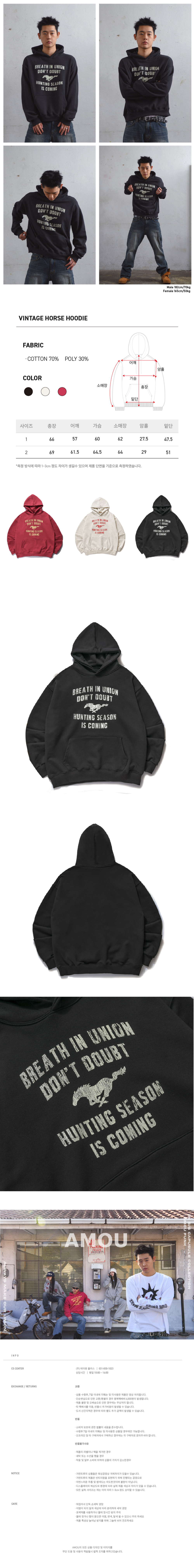 아모우 빈티지 홀스 후디 블랙