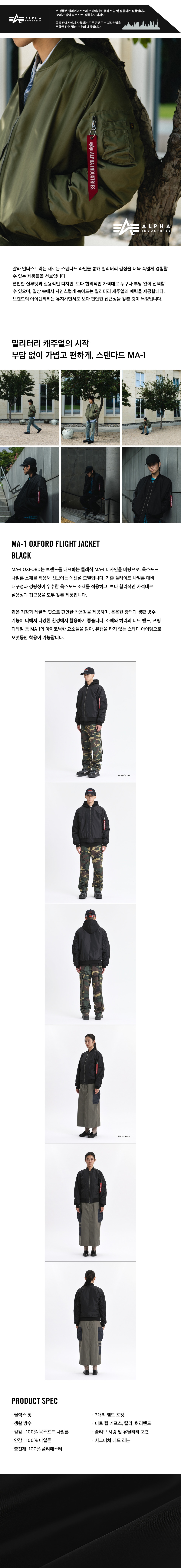 알파 인더스트리 MA-1 옥스포드 플라이트 자켓 블랙