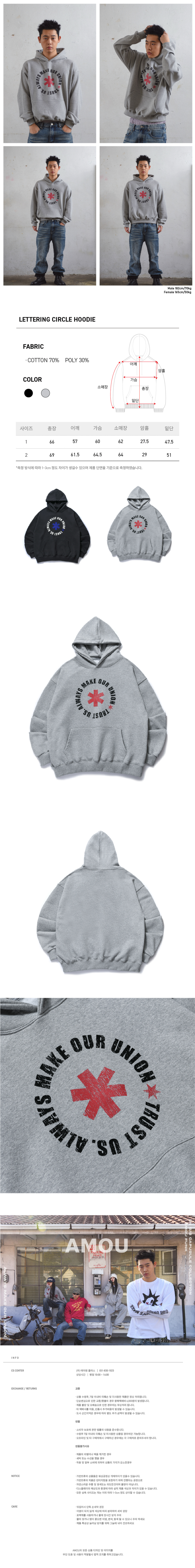 아모우 레터링 서클 세미 크롭 후디 그레이